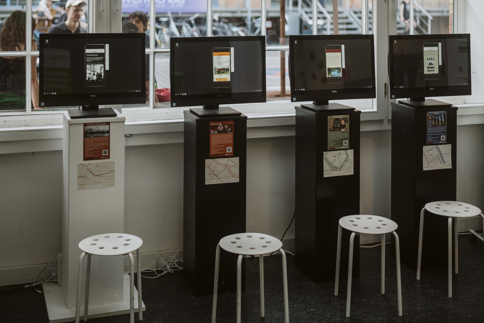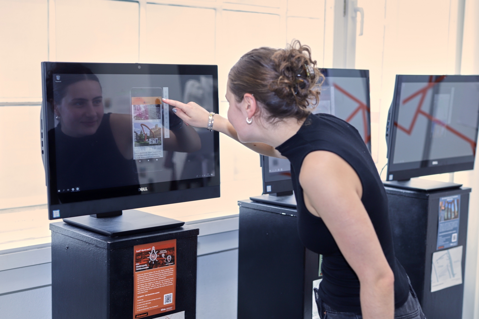 Bachelor-Studierende erläuterten Vorabversionen von zweier Actionbound-Touren: Zur Geschichte des Campus Wilhelminenhof sowie zum Werk für Fernsehelektronik (in Kooperationen mit dem Industriesalon). Beide Touren enthalten historische Fotos, informative Texte und interaktive Quizfragen.